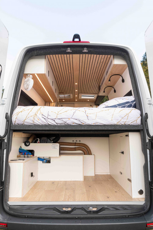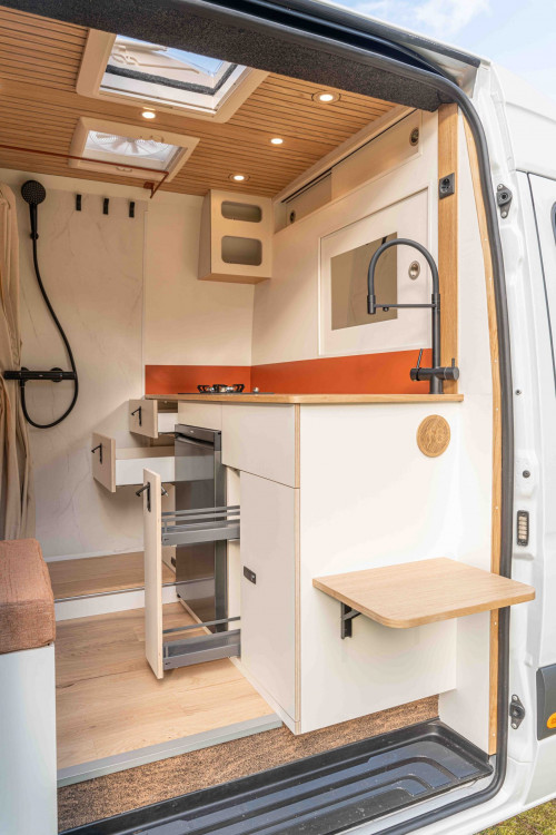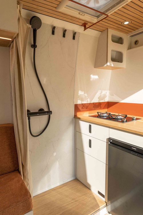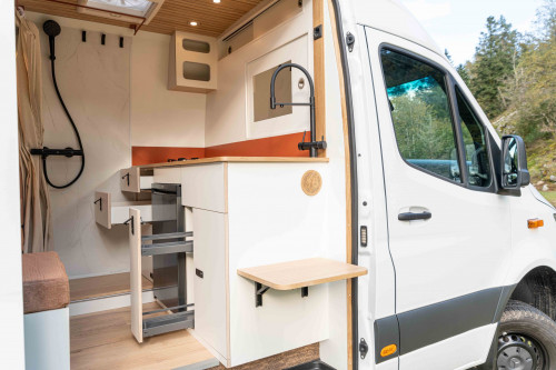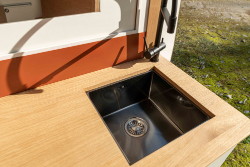- Réservoir 80L eau sale sous le châssis avec sonde anti-gel