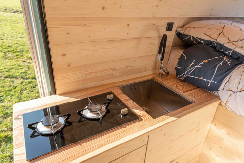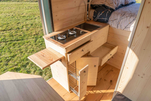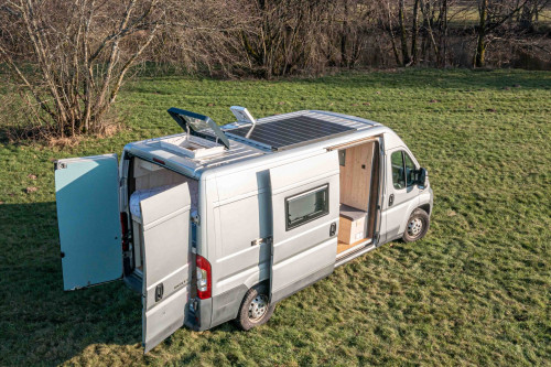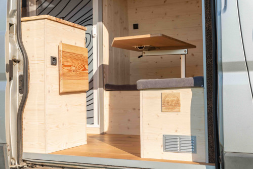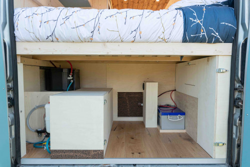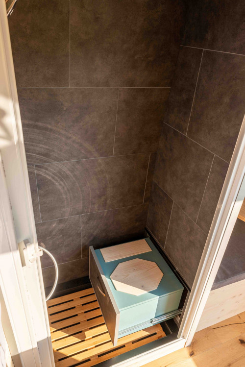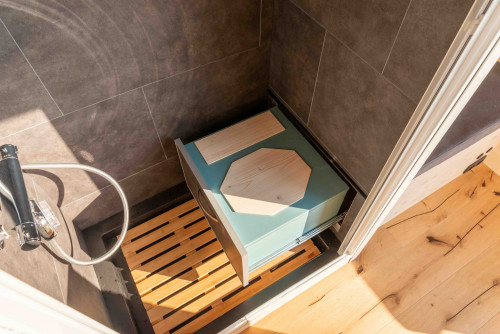 • Réservoir 80L eau sale sous le châssis avec sonde anti-gel
