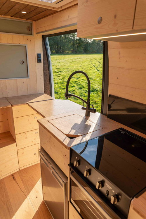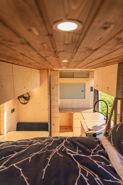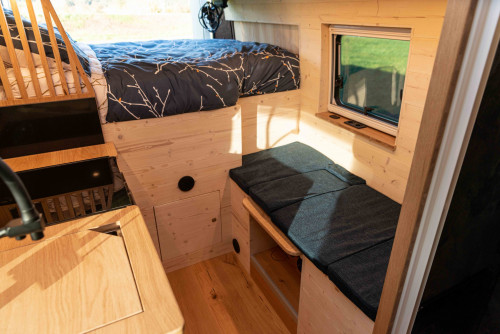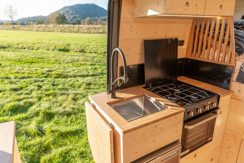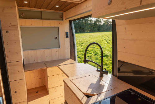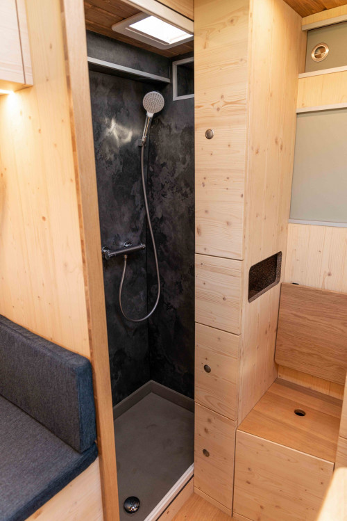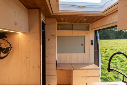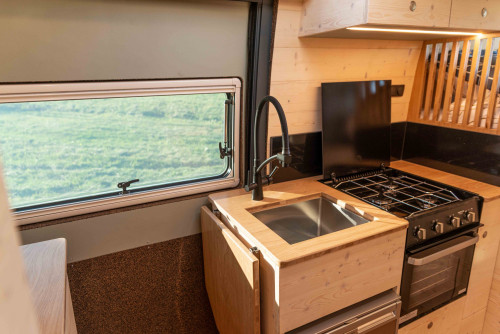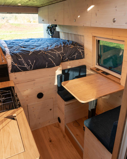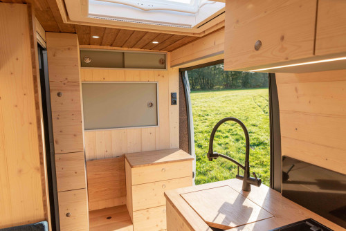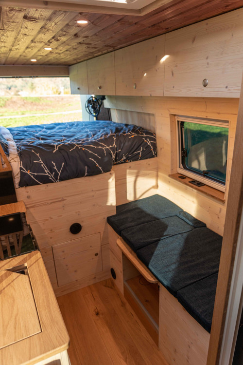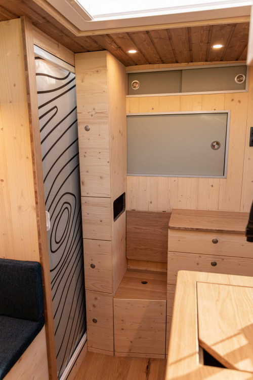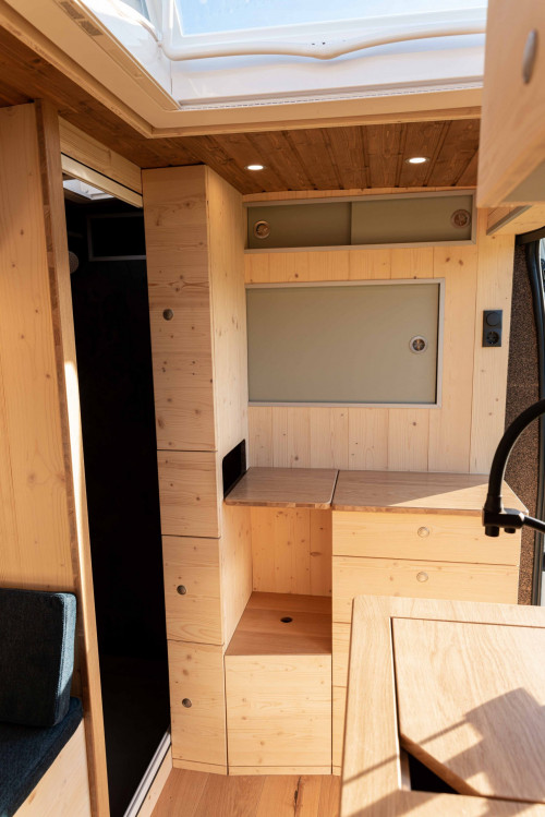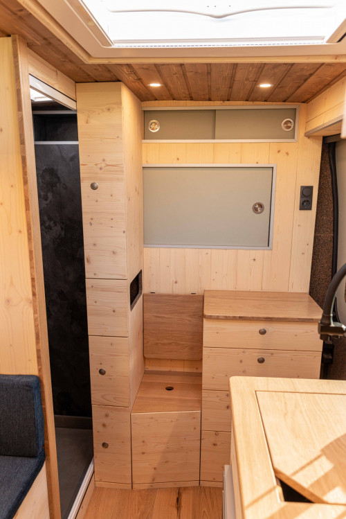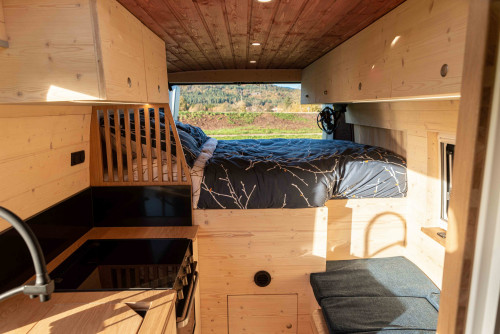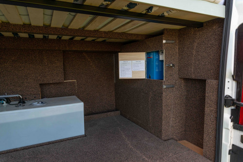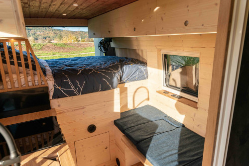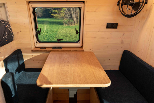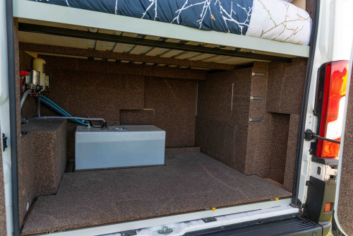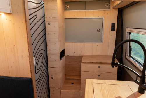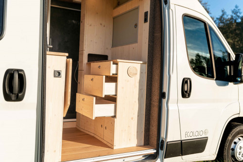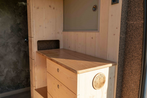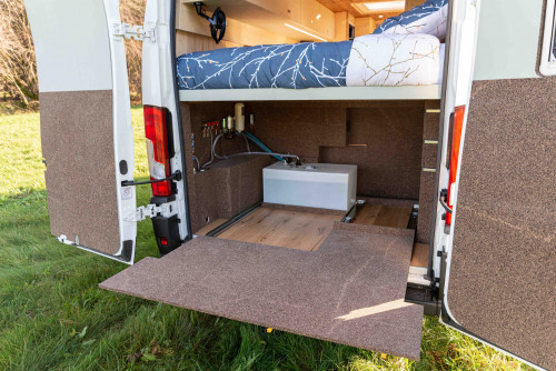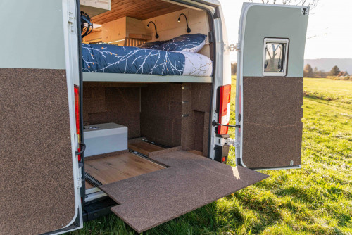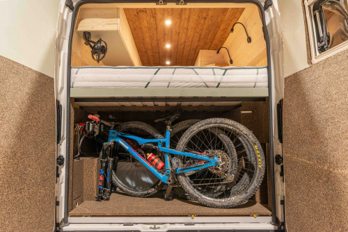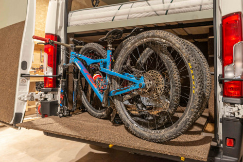 - Tiroir sur mesure dans la soute pour 2 VTT, sur coulisses charges lourdes