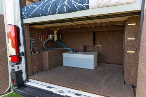 - Réservoir 80L eau sale sous le châssis avec sonde anti-gel